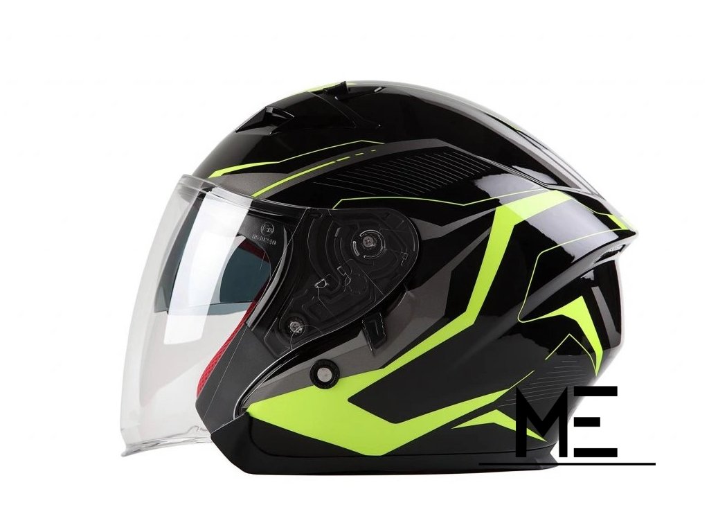 MAXX 878 [L] Skútrová helma s plexi a sluneční clonou - černo/zelená reflexní