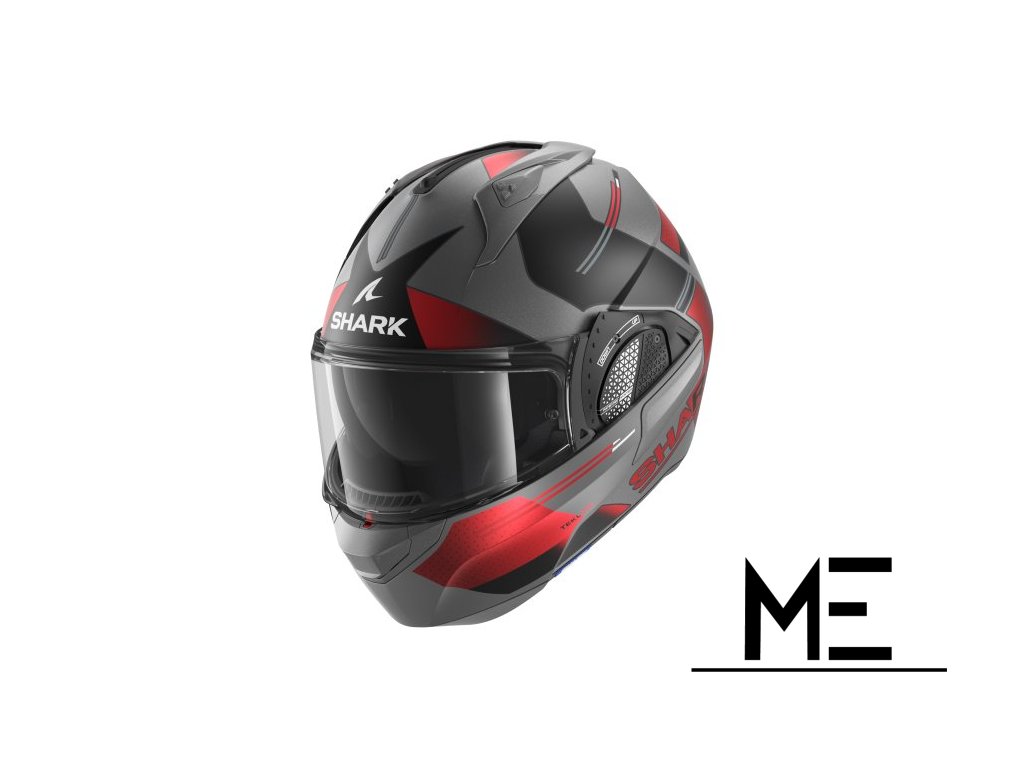 HE8917E-AUR-XL SHARK vyklápěcí přilba EVO-GT TEKLINE MAT barva černá/červená/matná/šedá, velikost XL