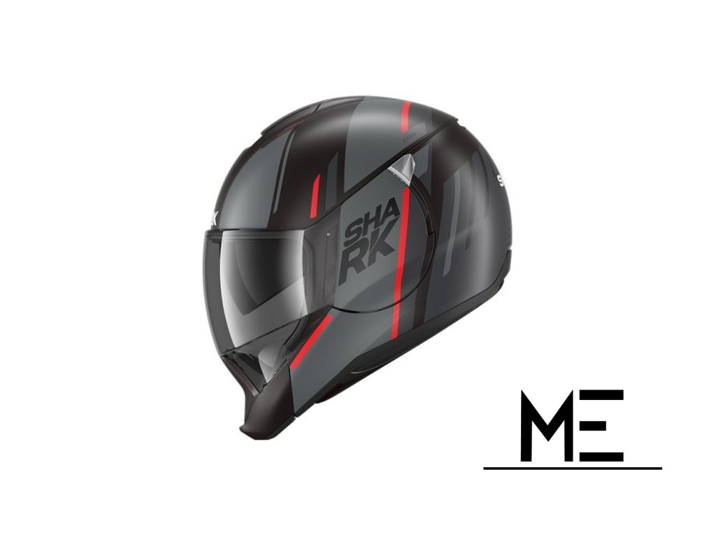 HE8809E-KAR-L SHARK vyklápěcí přilba EVOJET VYDA barva černá/červená/matná/šedá, velikost L